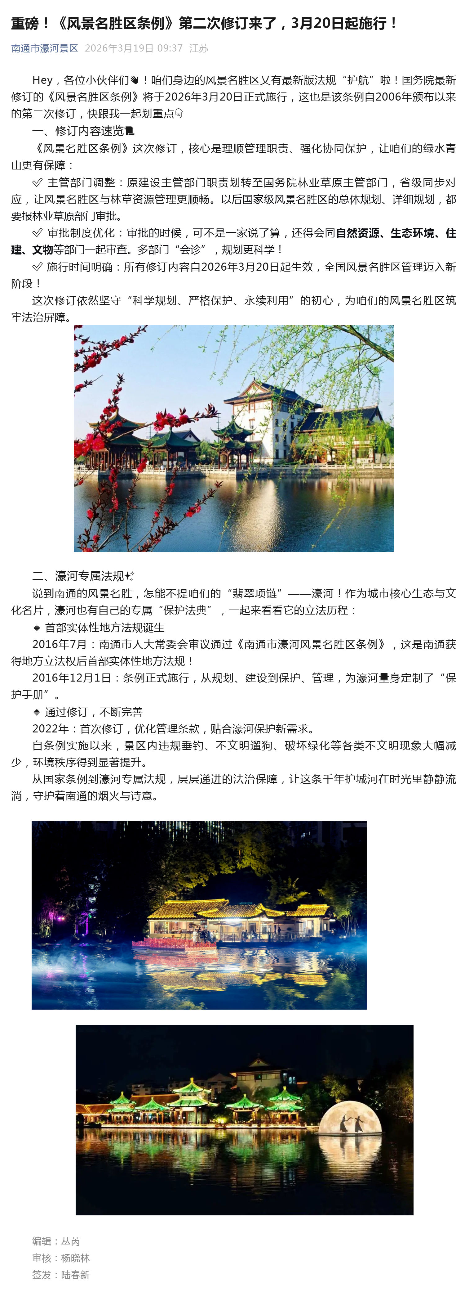 新版《南通市濠河风景名胜区条例》来啦!今天起正式施行